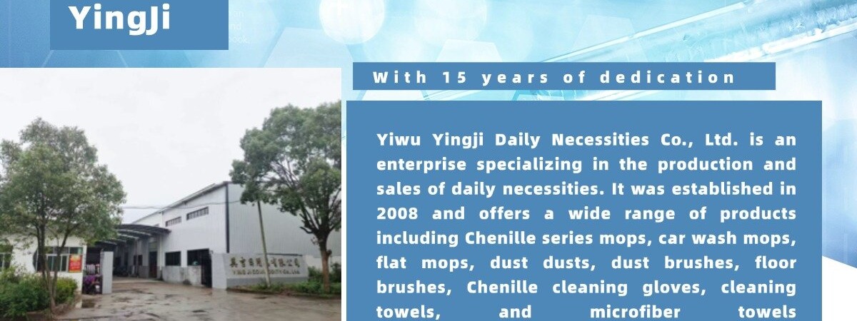A private limited company specializing in car wash mops, dust dusters, brushes, Chenille cleaning gloves, cleaning towels, microfiber towels and other products. The company was founded in 2008 and has the right to operate import and export business independently.The company is committed to providing customers with high-quality and low-priced products. To meet market demands and expand production capacity, the company invested in building Jiangxi Yingji Daily Necessities Company in Ji 'an, Jiangxi Province in 2012. Jiangxi Yingji Daily Necessities Co., Ltd. covers an area of 20 mu, has over 200 employees, a factory building of nearly 10,000 square meters, and is equipped with more than 20 types of injection molding machines, 2 tufting machines, and over 100 types of sewing equipment. After nearly a decade of unremitting development.